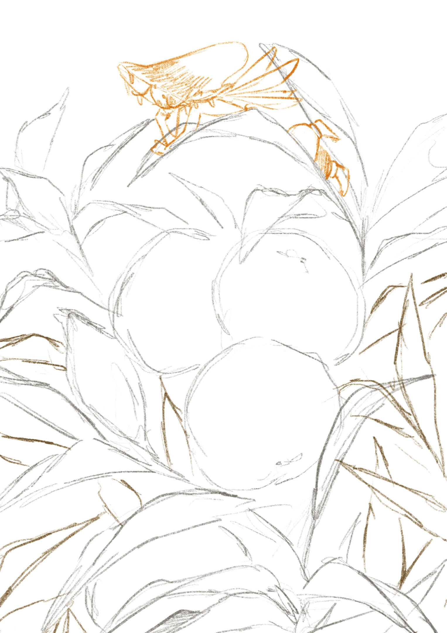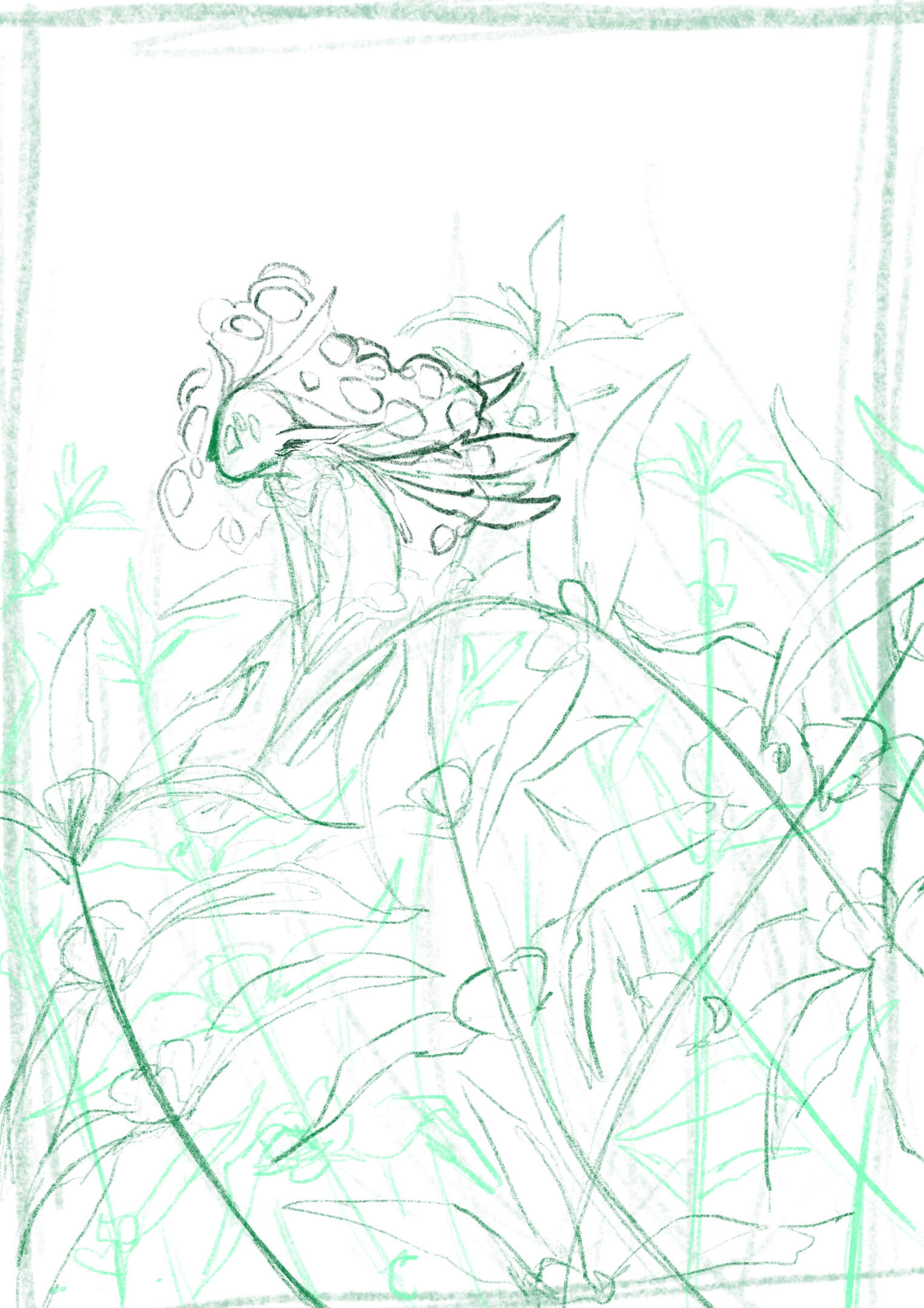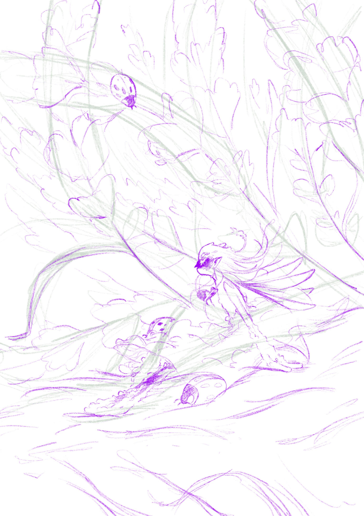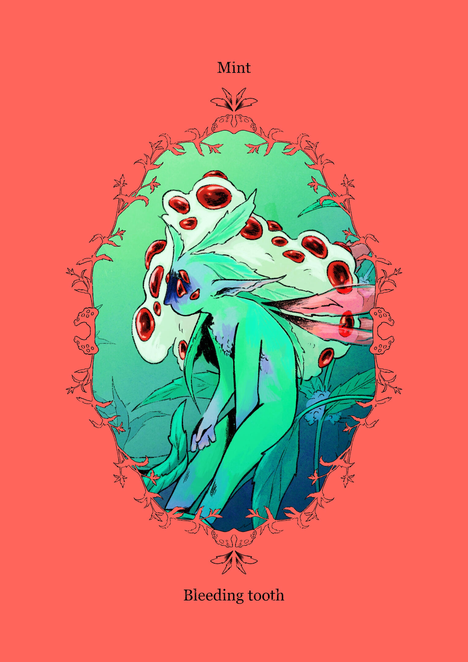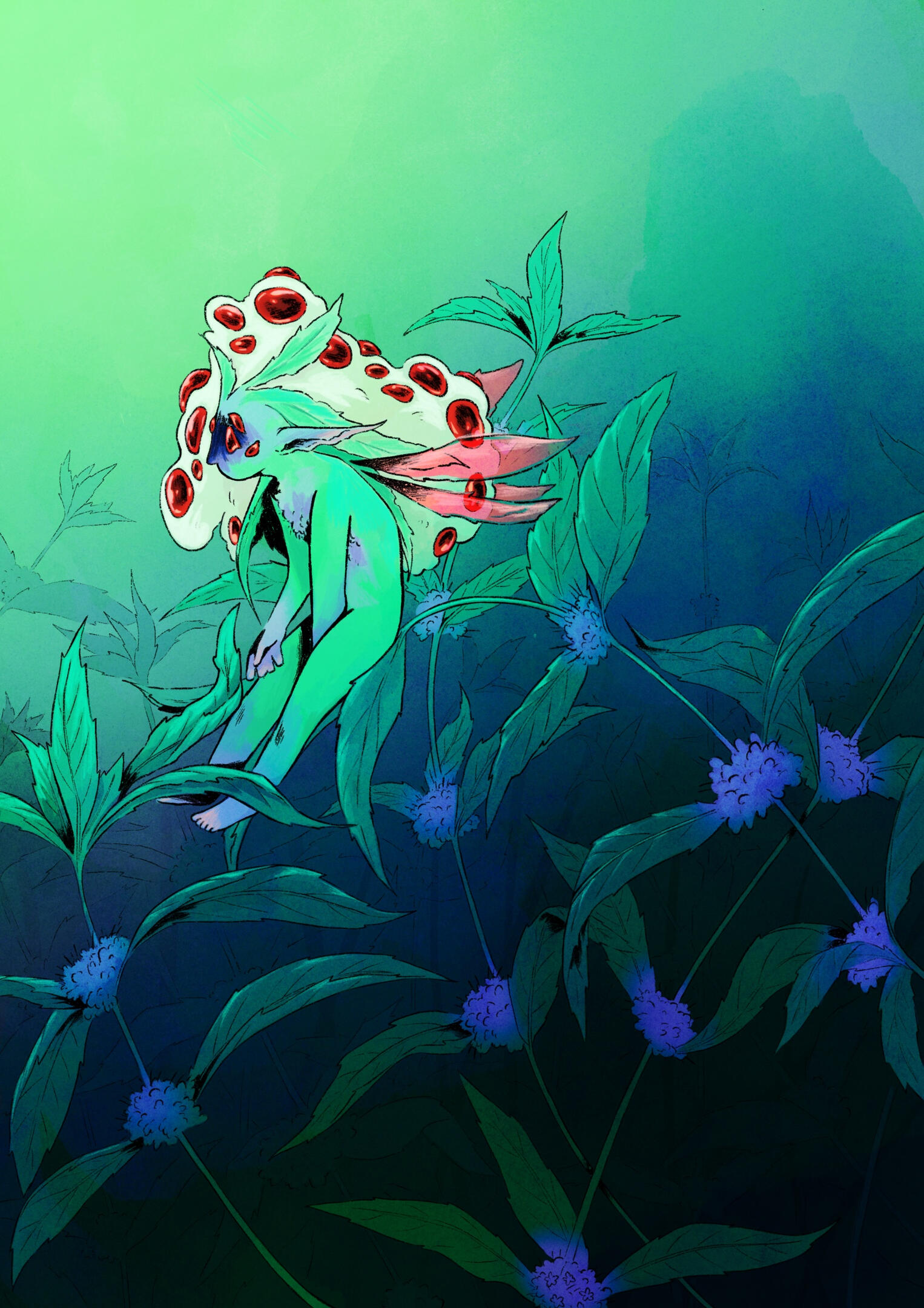 Serie of three illustrations based in two different challenges, one about plants, and the other about mushrooms.